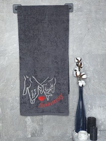 Полотенце с вышивкой 70*140 "любимому" темно-серое без бордюра