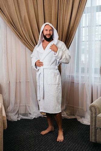 Халат махровый с капюшоном, белый 64-66