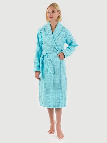 Халат женский вафельный PandaHug Оrnella голубой шаль