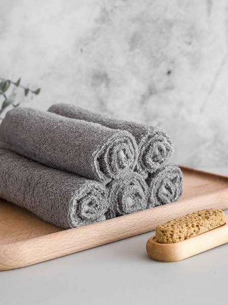 Набор махровых салфеток 5 шт ( 30*30 ) темно-серый, с петелькой