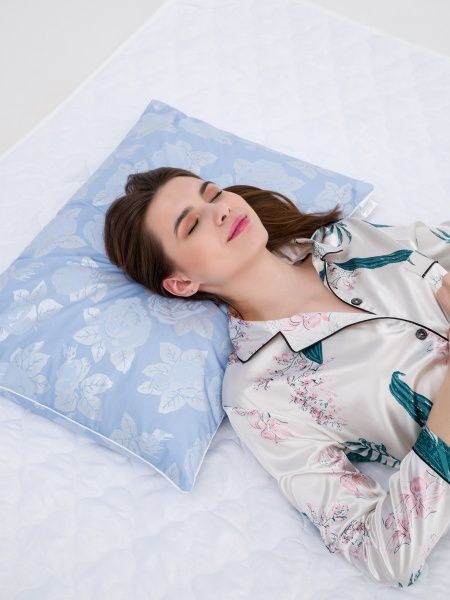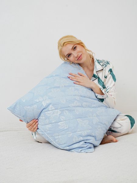 Подушка "Сила природы" с лузгой гречихи стежка бамбуковое волокно, голубая