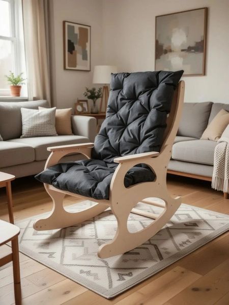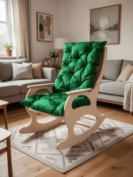 Для кресла-качалки — подушка не съезжает при движении, плотно лежит на сиденье и поддерживает поясницу во время покачивания.