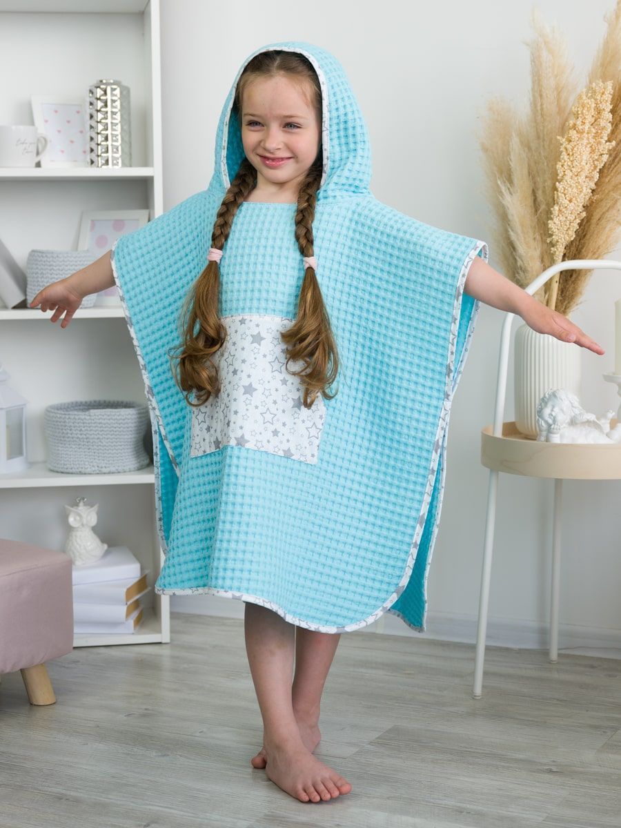 Пончо после купания гораздо удобнее для детей, чем обычные полотенца или халаты. Оно легко надевается через голову, поэтому малыш сможет проявлять самостоятельность и справляться без вашей помощи. Не сковывает движения, не имеет завязок и поясов, поэтому ничто не будет мешать вашему чаду во время игр.