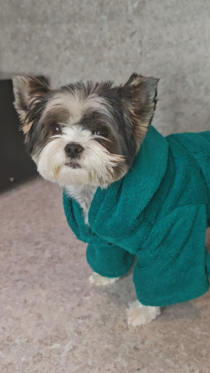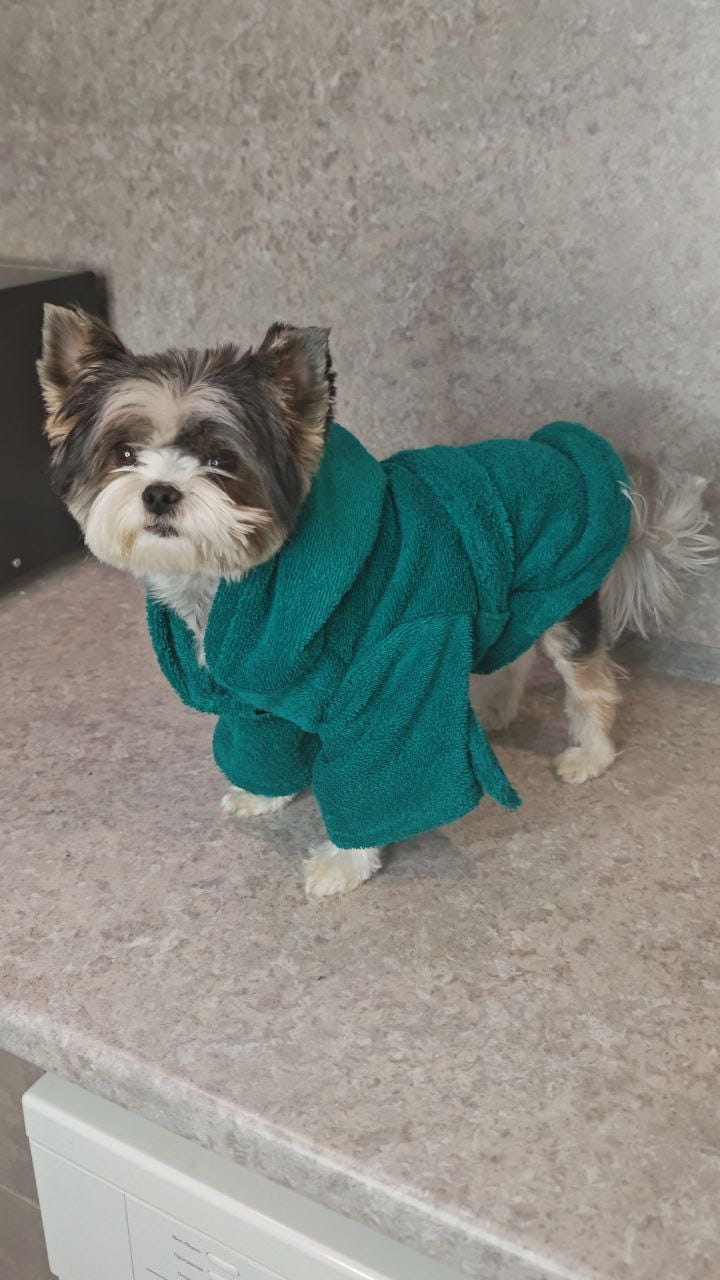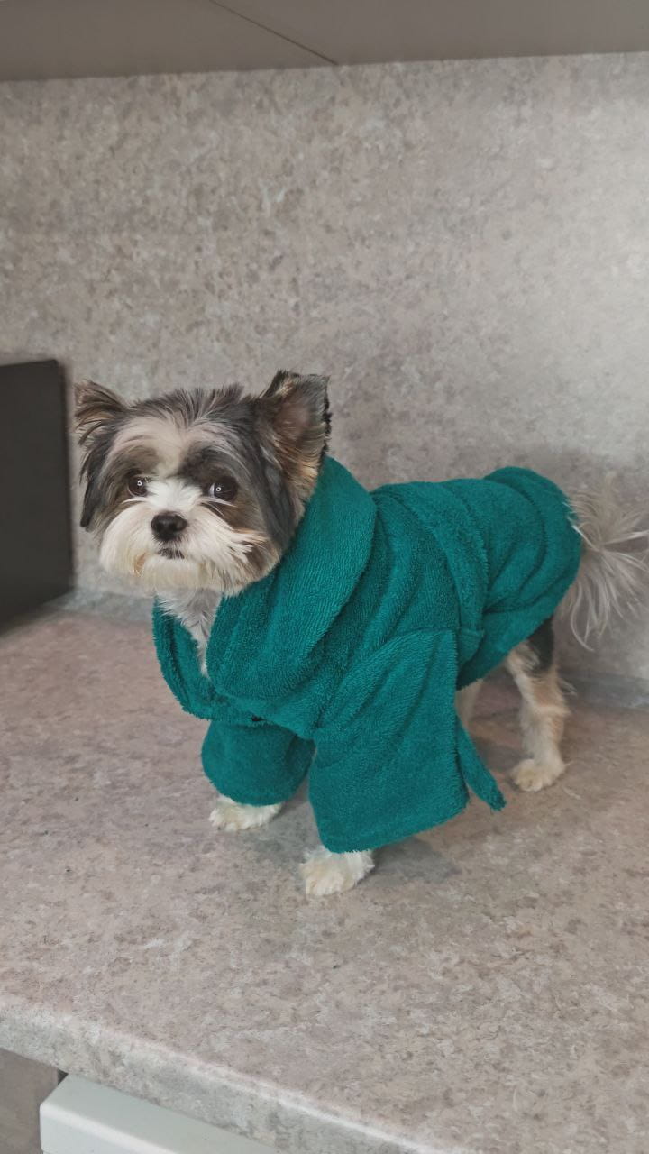 Побалуйте своего любимца уютом после прогулки или водных процедур! Этот легкий и практичный халат из натурального хлопка создан для комфорта вашего питомца.