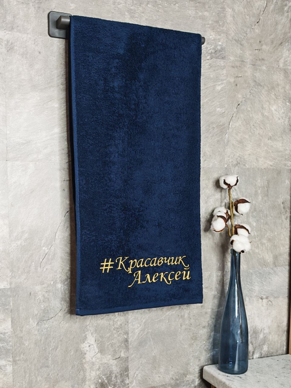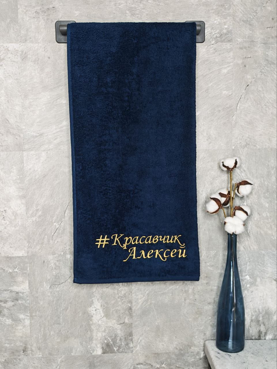 Полотенце с вышивкой 70*140 "красавчик" Алексей темно-синее