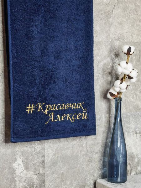 Полотенце с вышивкой 70*140 "красавчик" Алексей темно-синее POL/красавчикАлексей/3682