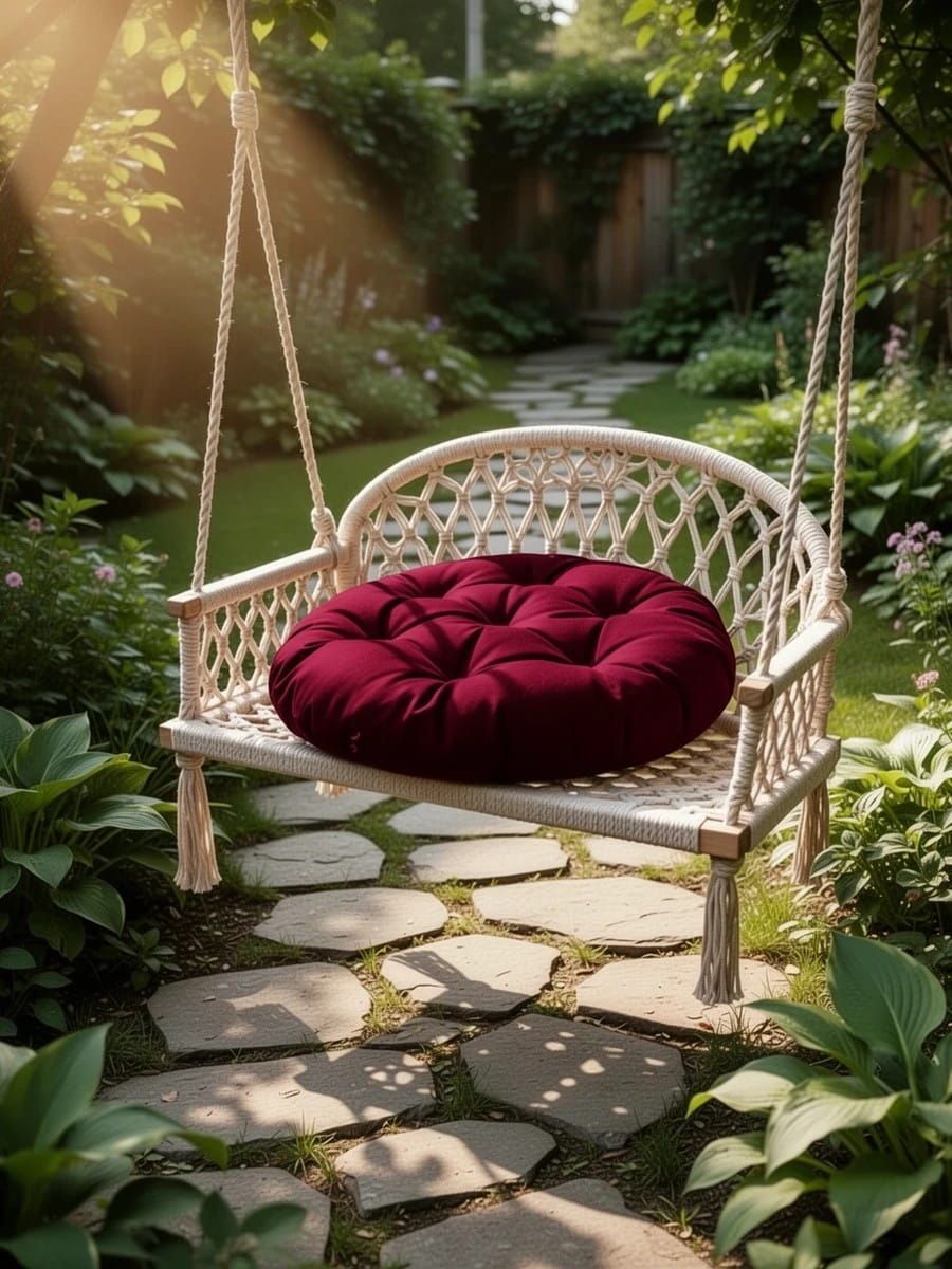 Универсальный размер: 60×60 см — идеально ложится в стандартные посадочные места большинства садовых качелей, кресел-коконов и подвесных кресел.