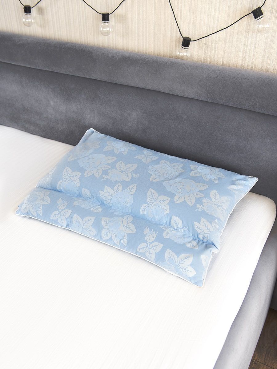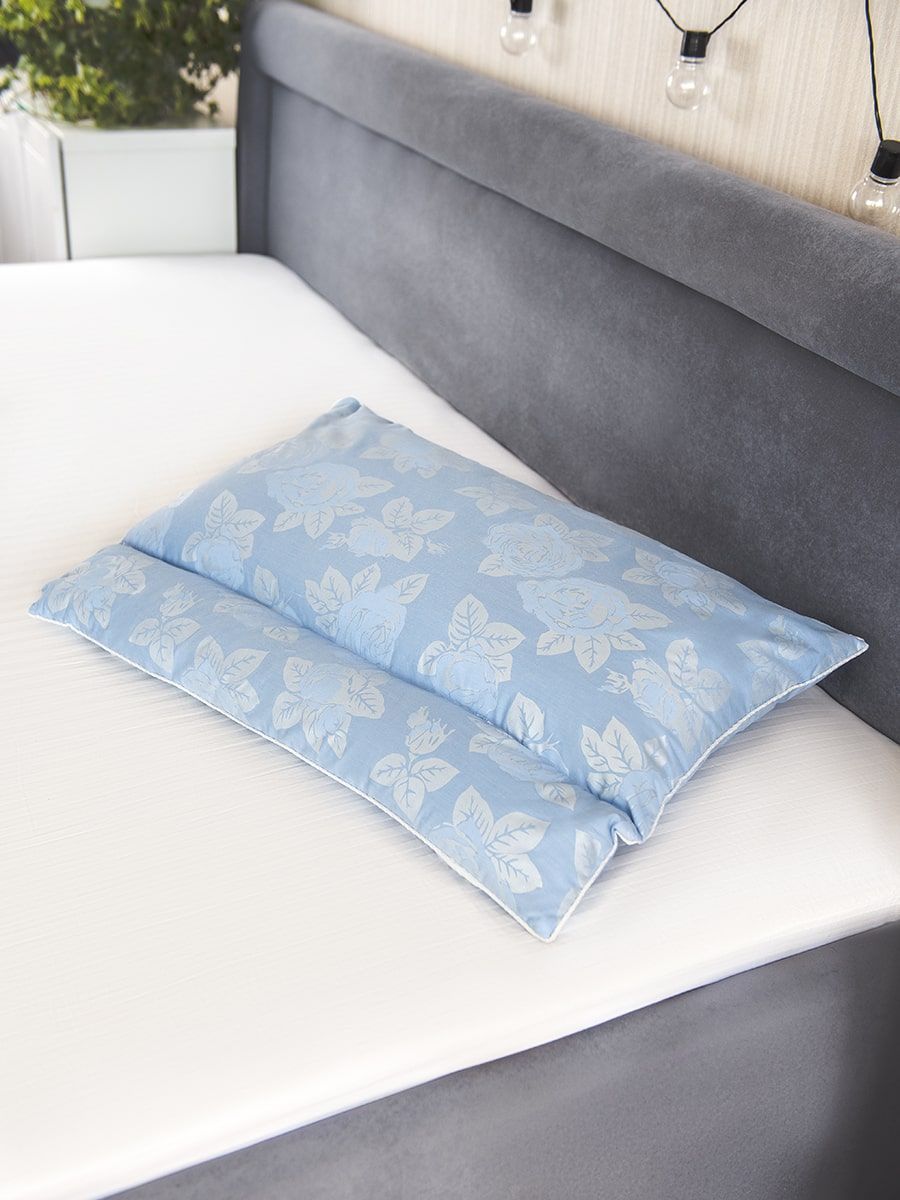 Обе секции, одна из которых меньше другой, наполнены лузгой гречихи. Это натуральный природный наполнитель, которые делает изделия полезными для здоровья, придавая им определенную плотность и жесткость, а также массажные свойства.