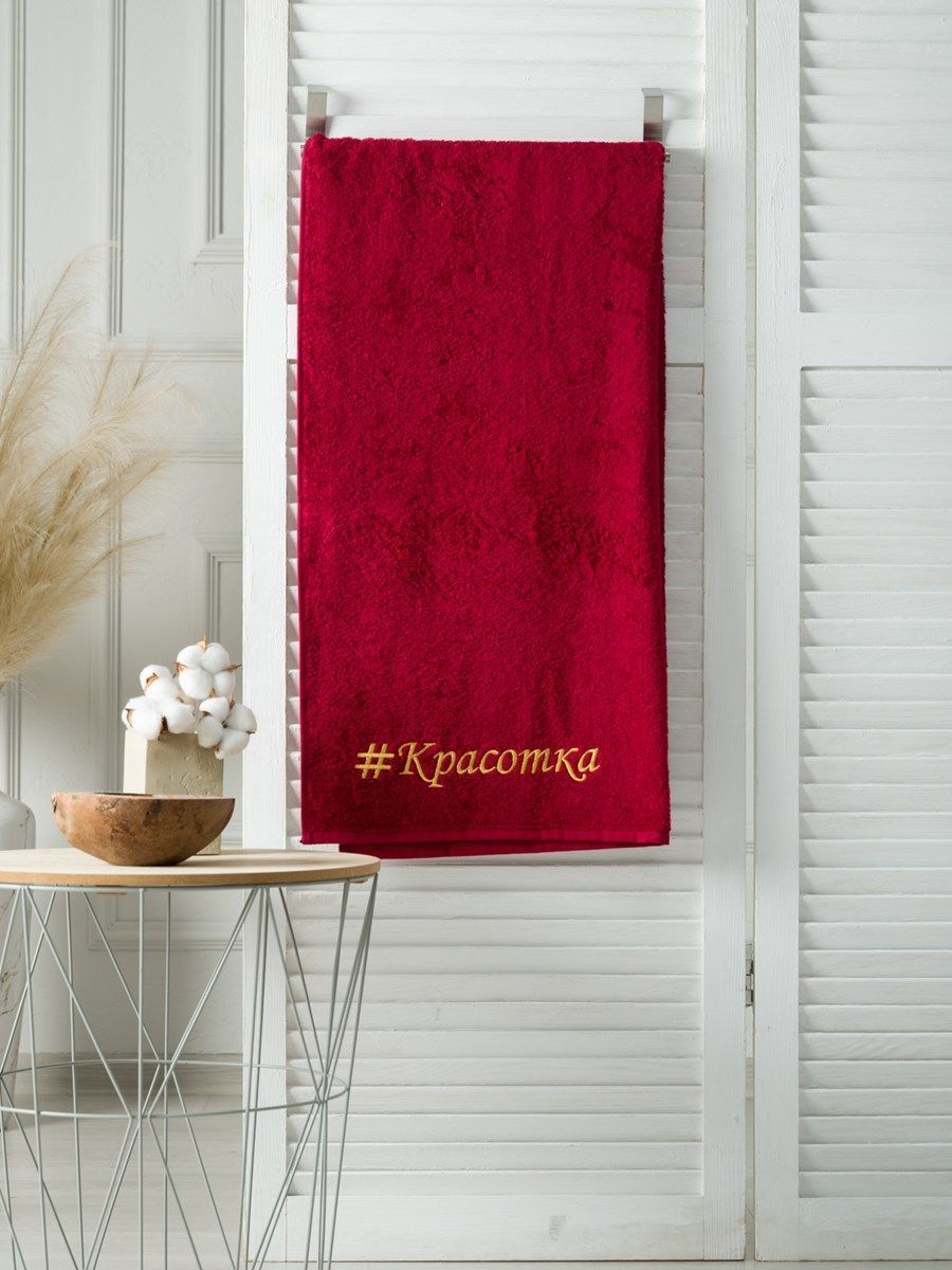 Полотенце с вышивкой 70*140 "красотка" бордовое POL/красотка