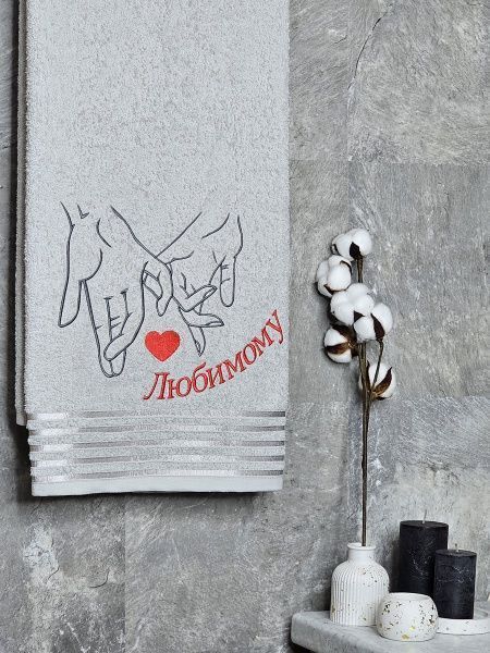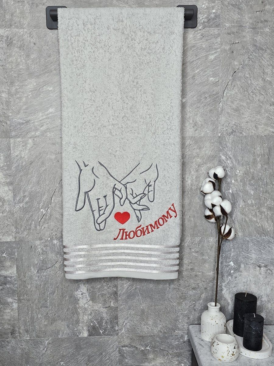Полотенце с вышивкой 70*140 "любимому" светло-серое POL/любимому/692