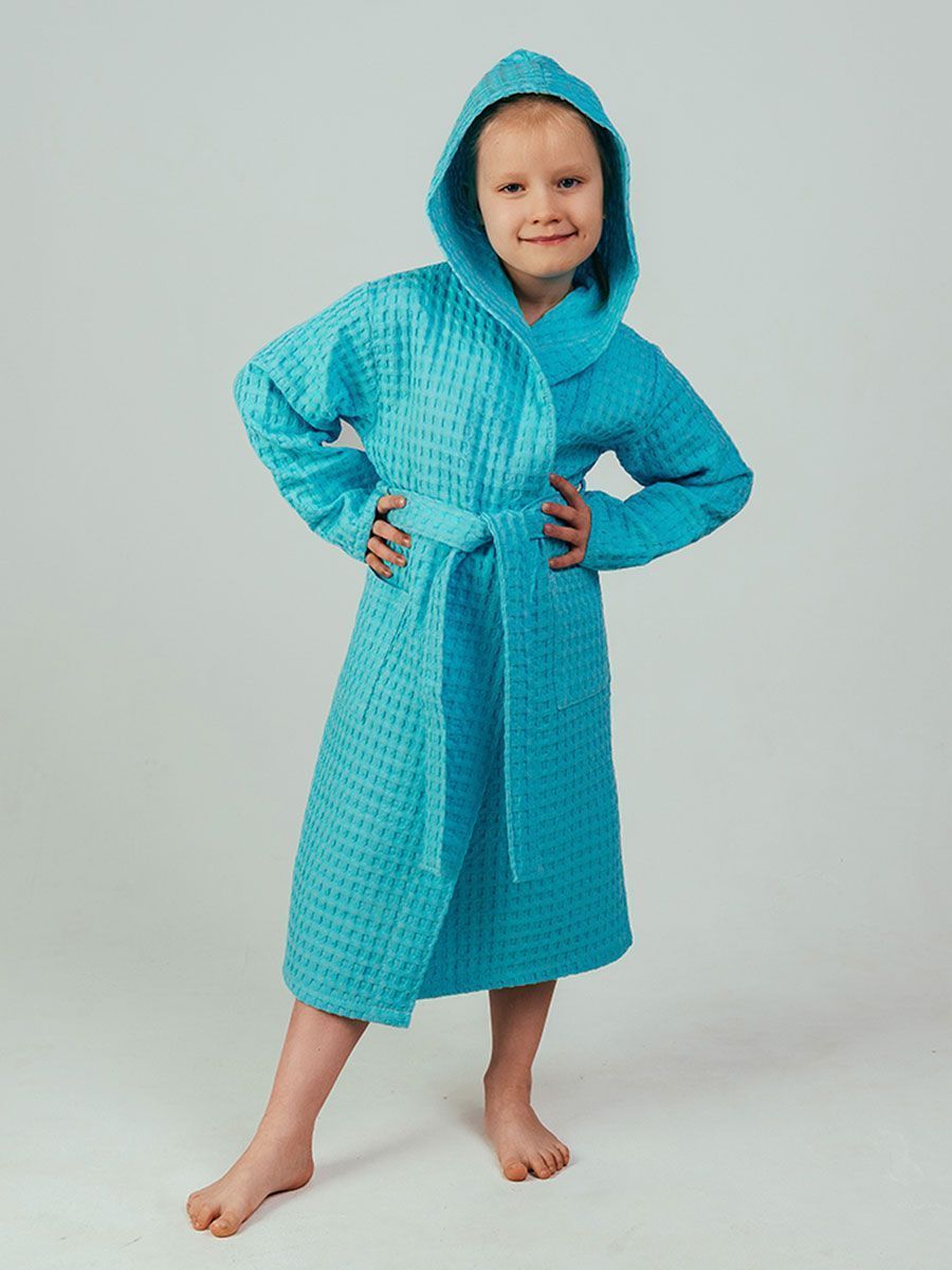Вафельный халатик для детей, выполненный из натурального материала – 100% хлопка с карманом, удобен и универсален.  Ткань не вызывает аллергии и раздражения кожи, прекрасно пропускает воздух,  быстро впитывает влагу и так же мгновенно сохнет.   Форма халата с запахом и широким поясом позволит использовать его долгое время, несмотря на быстрый рост ребенка. Поэтому для домашнего ухода за детьми вафельный халат является одной из самых удобных и практичных вещей.   Халат из вафельной ткани легкий и практичный, благодаря натуральному составу ткани сохраняется комфортная температура тела,  идеальная для жаркого лета.   После любых водных процедур, вафельный халатик создаст приятную прохладу и быстро высушит тело, он свободный и приятный к детской коже.