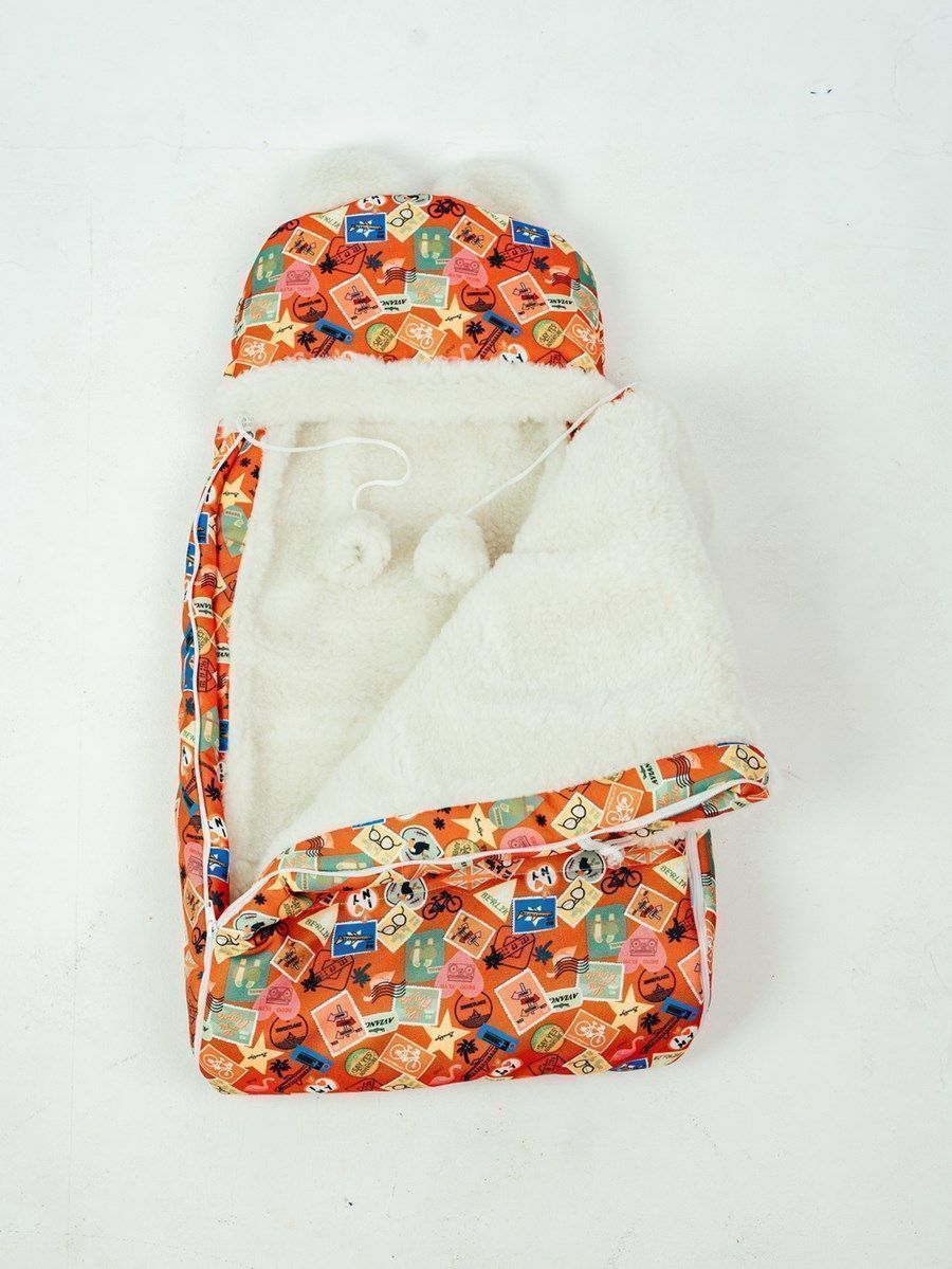 Конверт детский меховой на выписку "Марки" 82*42 (до 6 мес), 100*46 (до 1 года)