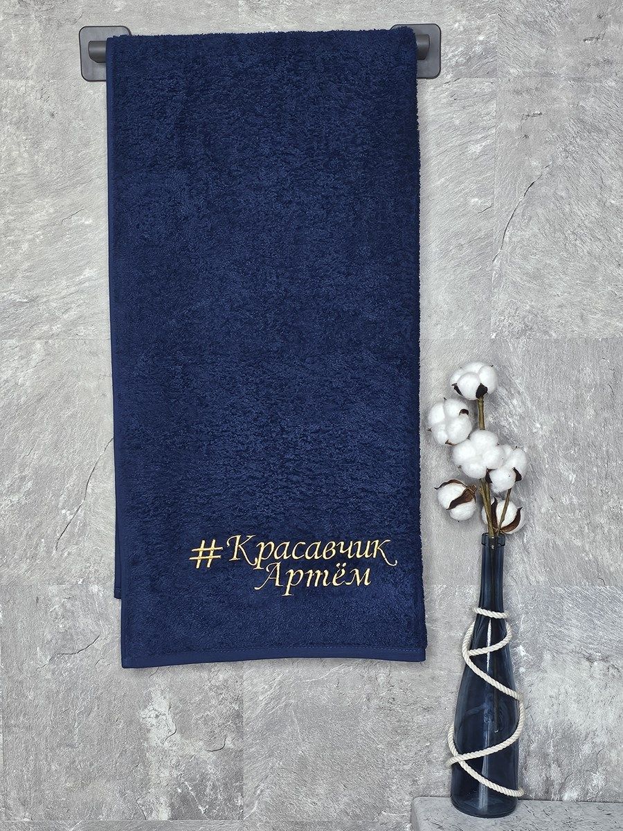 Полотенце с вышивкой 70*140 "красавчик" Артем темно-синее