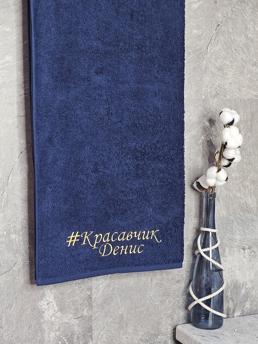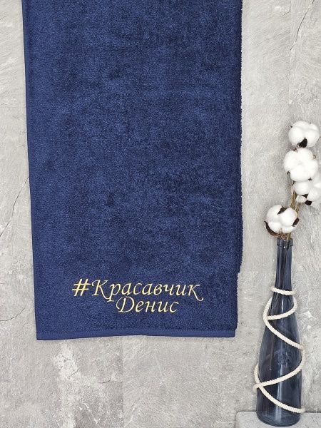 Полотенце с вышивкой 70*140 "красавчик" Денис темно-синее POL/красавчикДен/2125