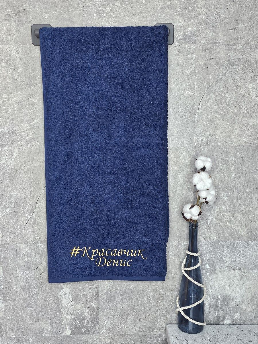 Полотенце с вышивкой 70*140 "красавчик" Денис темно-синее