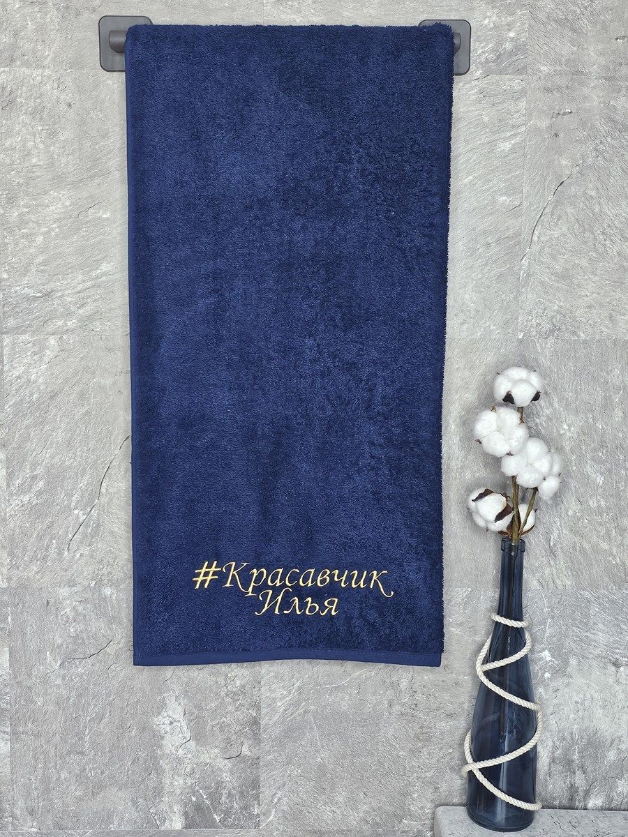 Полотенце с вышивкой 70*140 "красавчик" Илья темно-синее