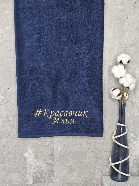Полотенце с вышивкой 70*140 "красавчик" Илья темно-синее POL/красавчикИлья/2127